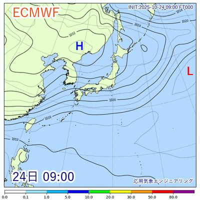 ECMWF(open data)は、イギリスに本社を置く国際気象機関が発表する天気予報モデルです。