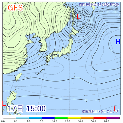 GFSは、アメリカ海洋大気庁が発表する天気予報モデルです。