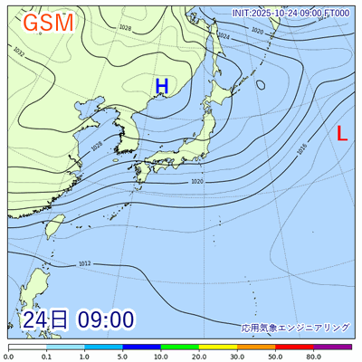 予想時間:3時及び15時発表…120時間先まで。9時及び21時…180時間先まで。